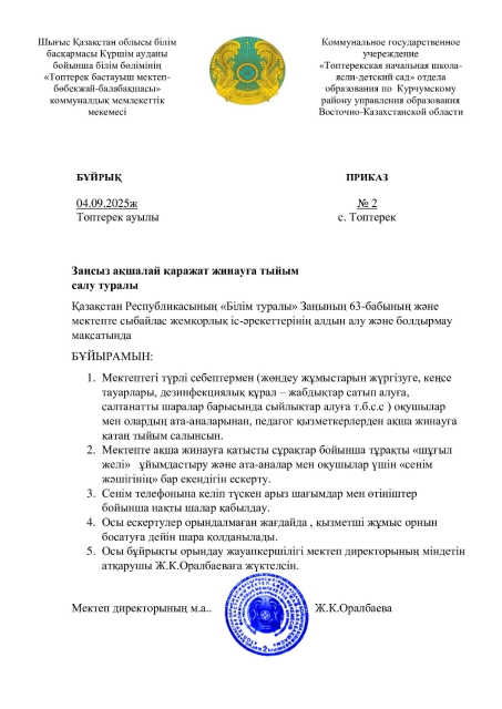 Штаттық кестеКраткое описание раздела может быть в несколько строк.